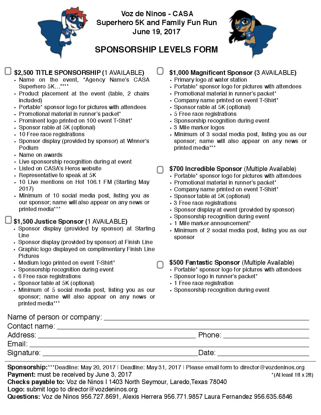 CASA Superhero Sponsorship Form