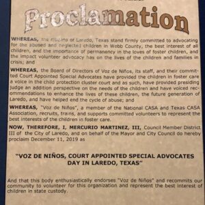 City of Laredo Mayor and City Council proclaim December 11, 2019 as “Voz de Ninos, Court Appointed Special Advocates Day in Laredo, Texas”